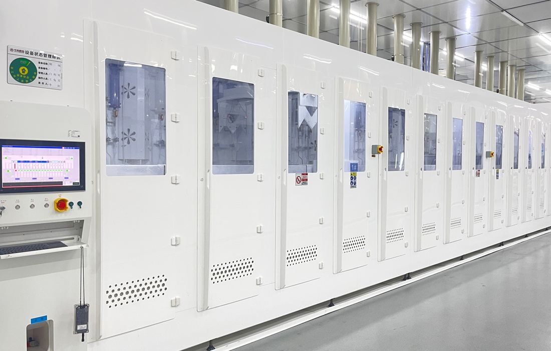 设备特点:制备的金字塔结构均匀,刻蚀深度可调;支持MES、RFID及选配在线称重功能;在线一键洗配槽,实现简单快速换液;工艺槽根据工艺要求循环量可调。